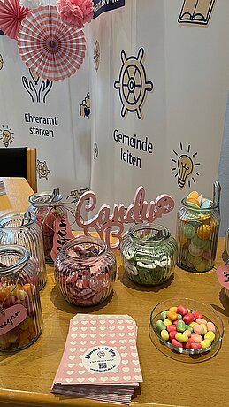 Und heute können wir sagen: Die Candybar ist ein absoluter Publikumsmagnet und ein echter Treffpunkt geworden! Während der Pausen ist sie zu einem Ort der Begegnung für Ehrenamtliche und Hauptamtliche gleichermaßen. Hier kommen Menschen zusammen, tauschen sich aus, pflegen bestehende Netzwerke und knüpfen neue Verbindungen.